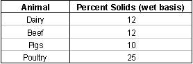 Percent Solids of Manure as Excreted