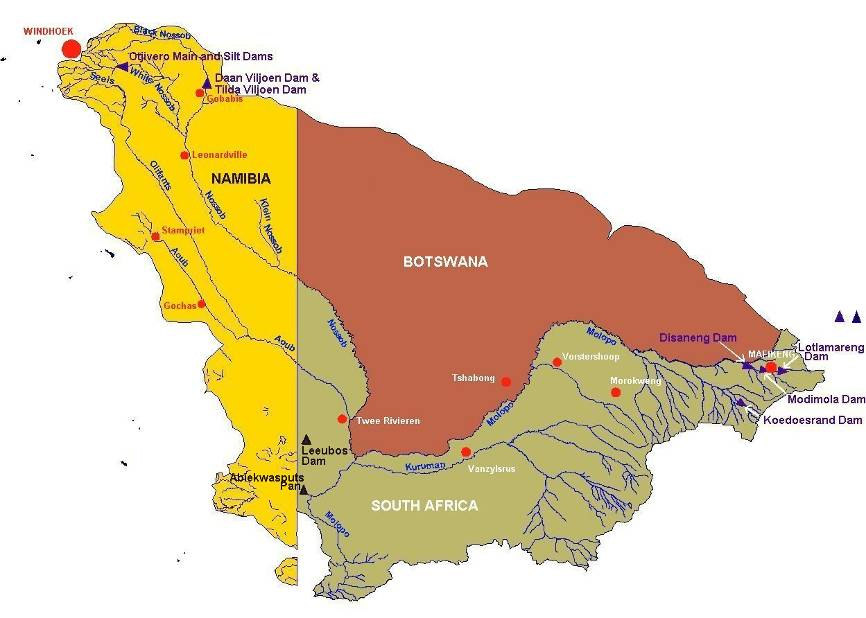 Botswana and South Africa down to its confluence with the Molopo River. There is