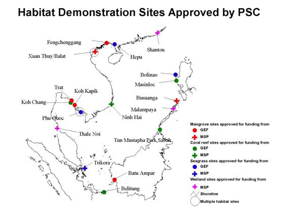 Project Objective: The objective of the project is to demonstrate integrated management of regionally significant coral reef and seagrass habitats connected to the South China Sea for the prevention of future ecosystem degradation and sustainable utilization of coastal resources at the site. The project aims to establish a marine protected area (MPA) for the effective management of 1,070 ha of coral reef, including a total 40 ha of seagrass, at Ninh Hai through the establishment of a cross-sectorial and participatory management scheme, integrated management plan, and demarcation. | ||||||||