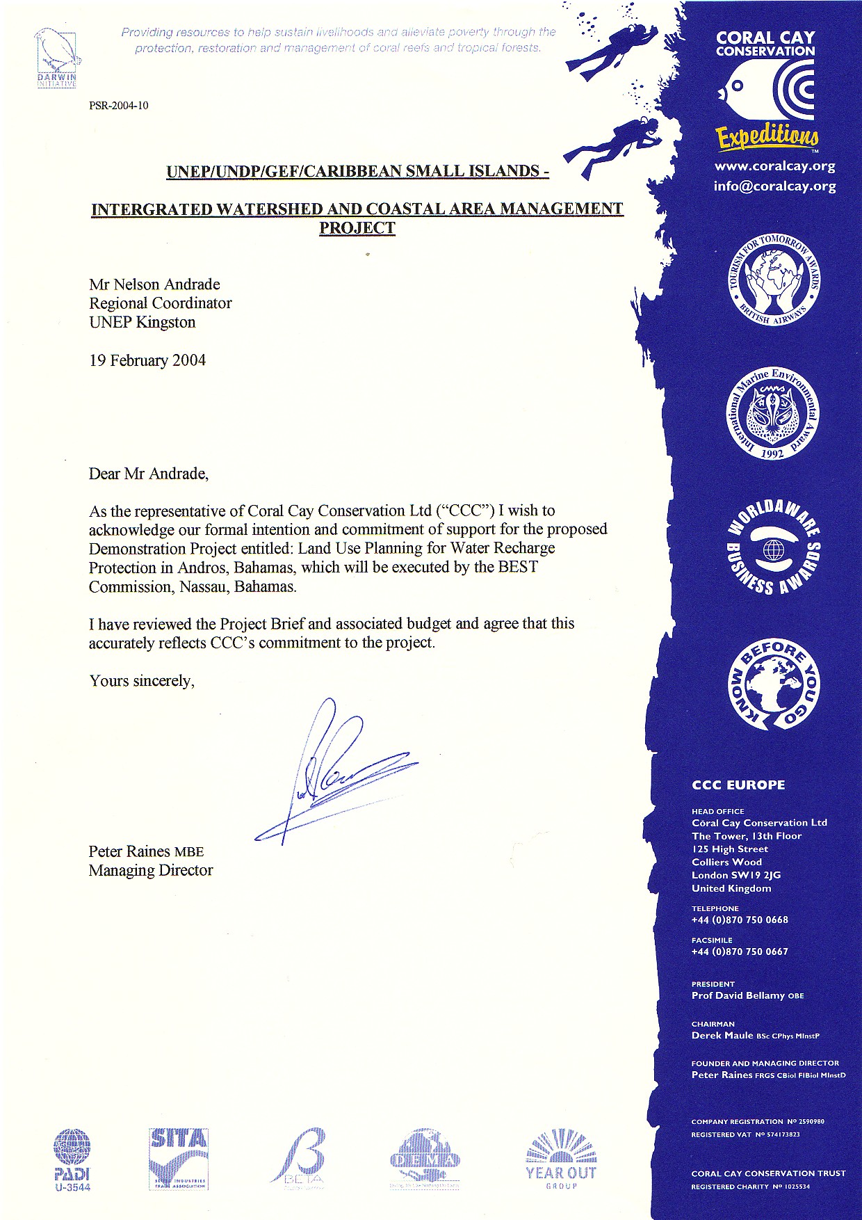 To: Nelson Andrade, Regional Coordinator, UNEP Kingston