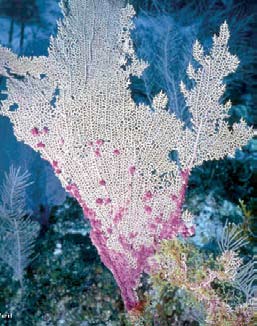 Sea fan affected by Colored Band Disease (Purple Spots).