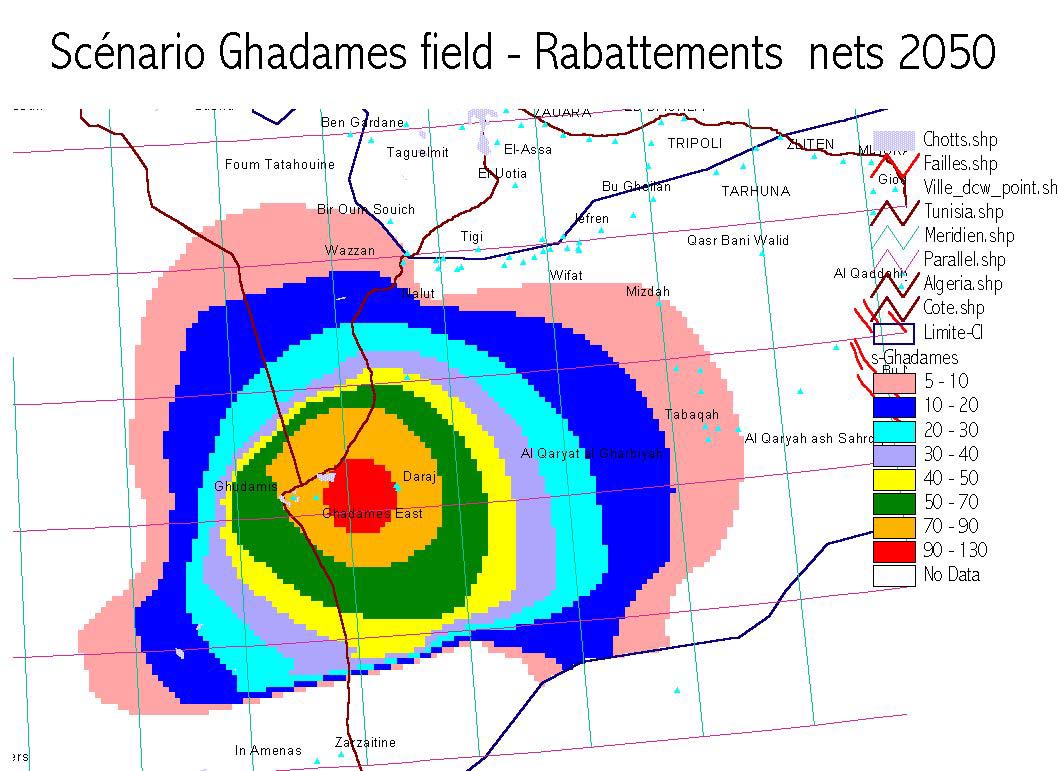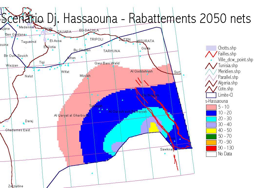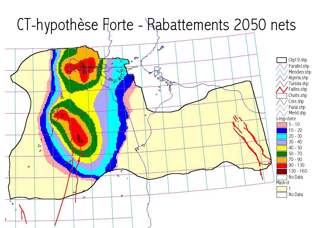 rabattements sont partout supérieurs à 20m. En Libye, ils sont de 25m