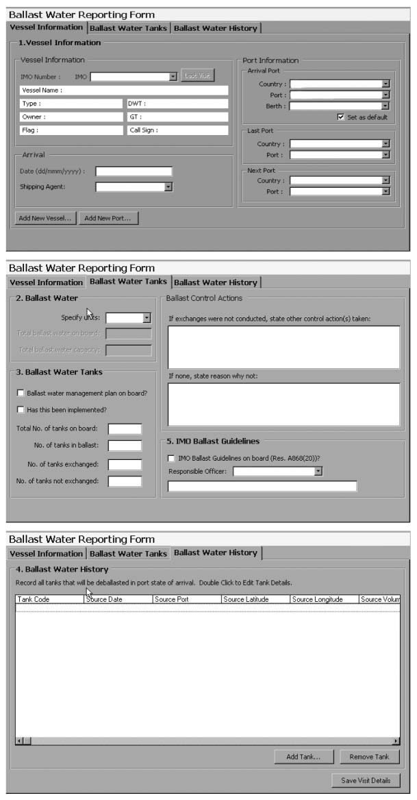 Ballast Water Reporting Form (the standard IMO BWRF is shown in Appendix 1)