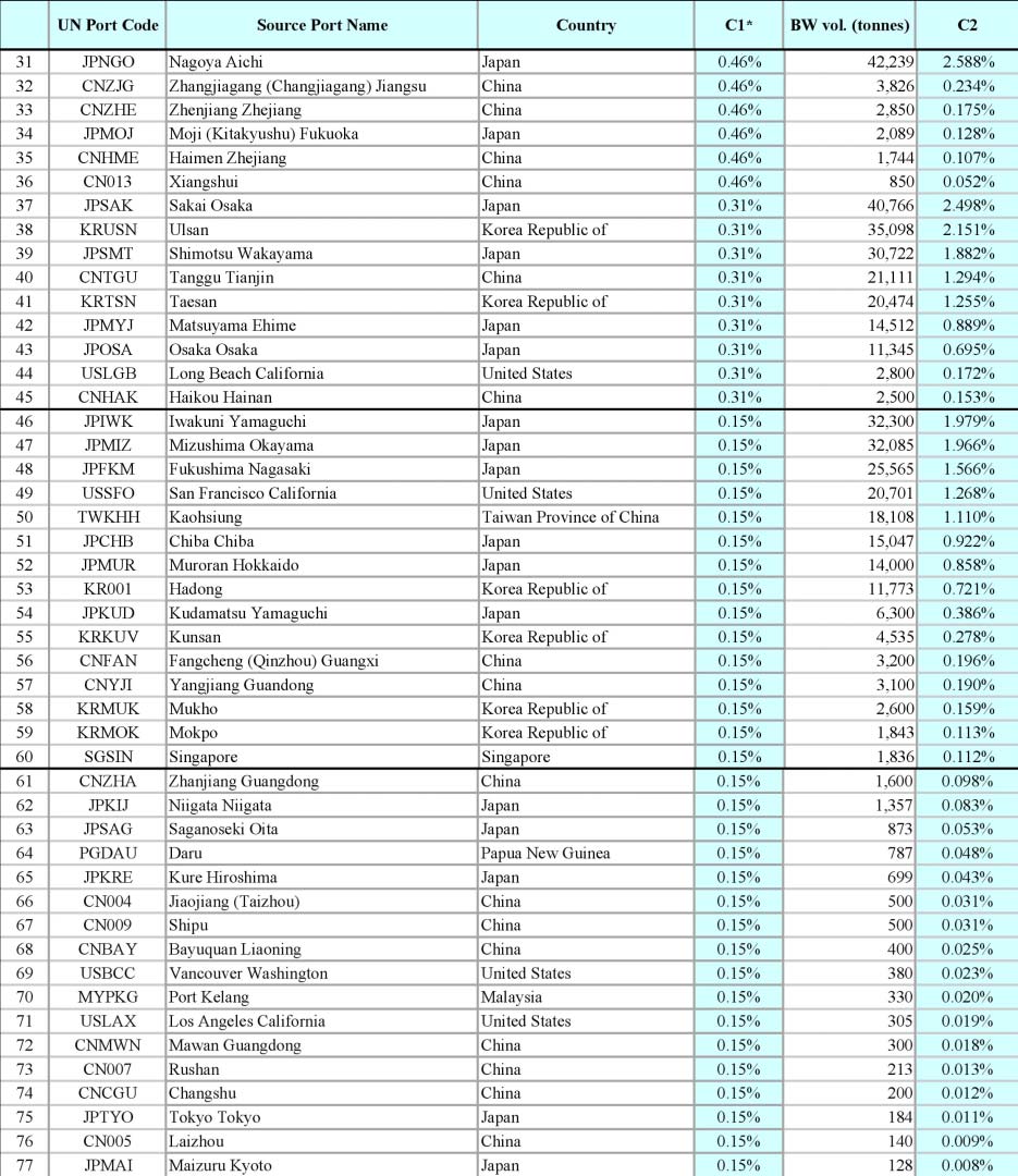 Clarke, C., Hilliard, R., Liuy, Y., Polglaze, J., Zhao, D., Xu, X. & Raaymakers, S. 2004. Ballast Water Risk Assessment, Port