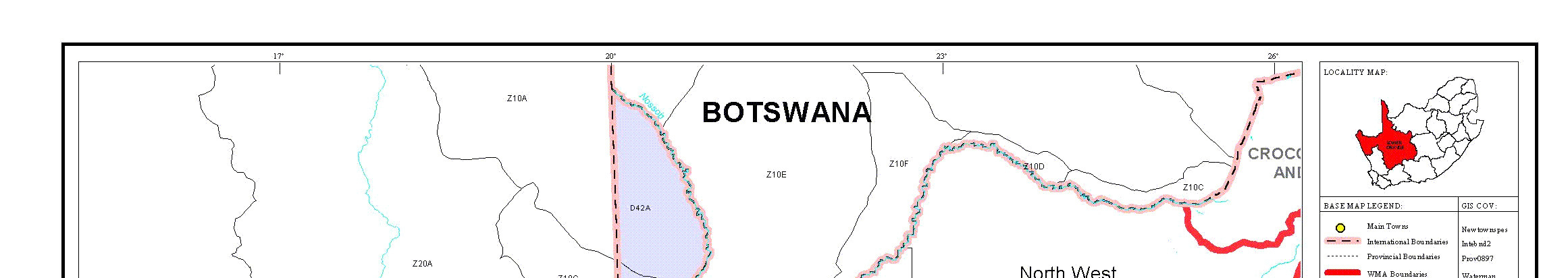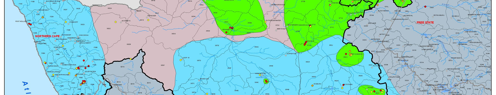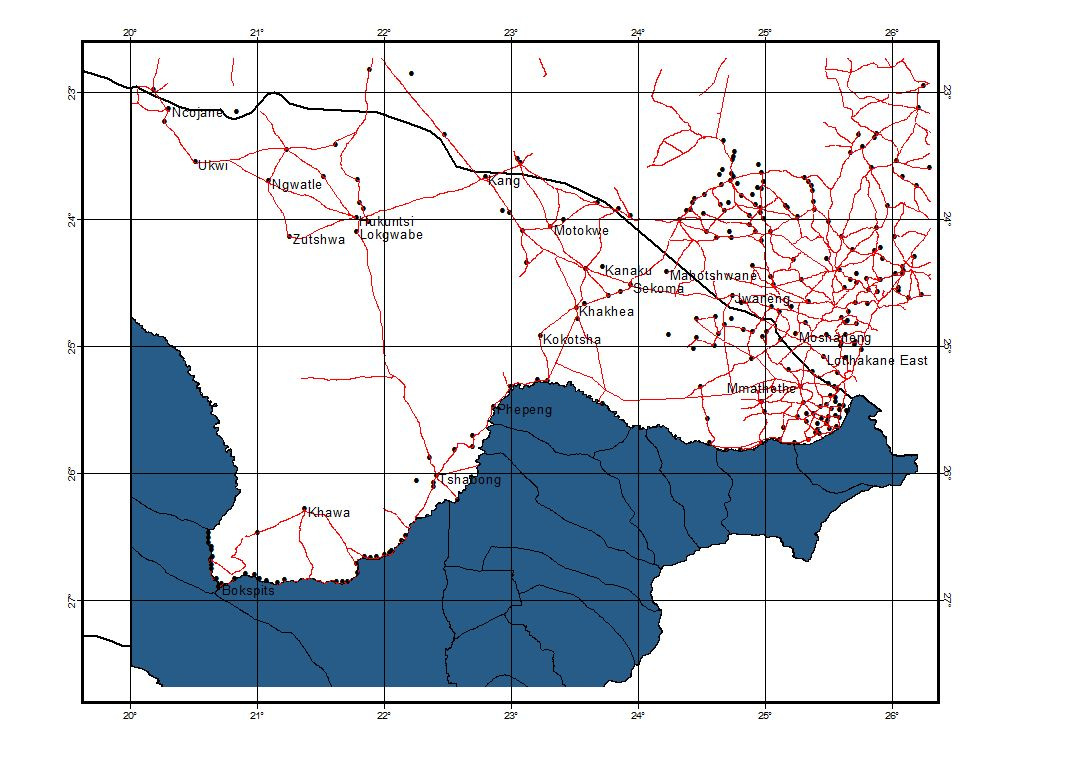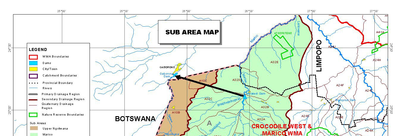 Kgalagadi North District in Botswana to 62 for the Upper Molopo catchment area