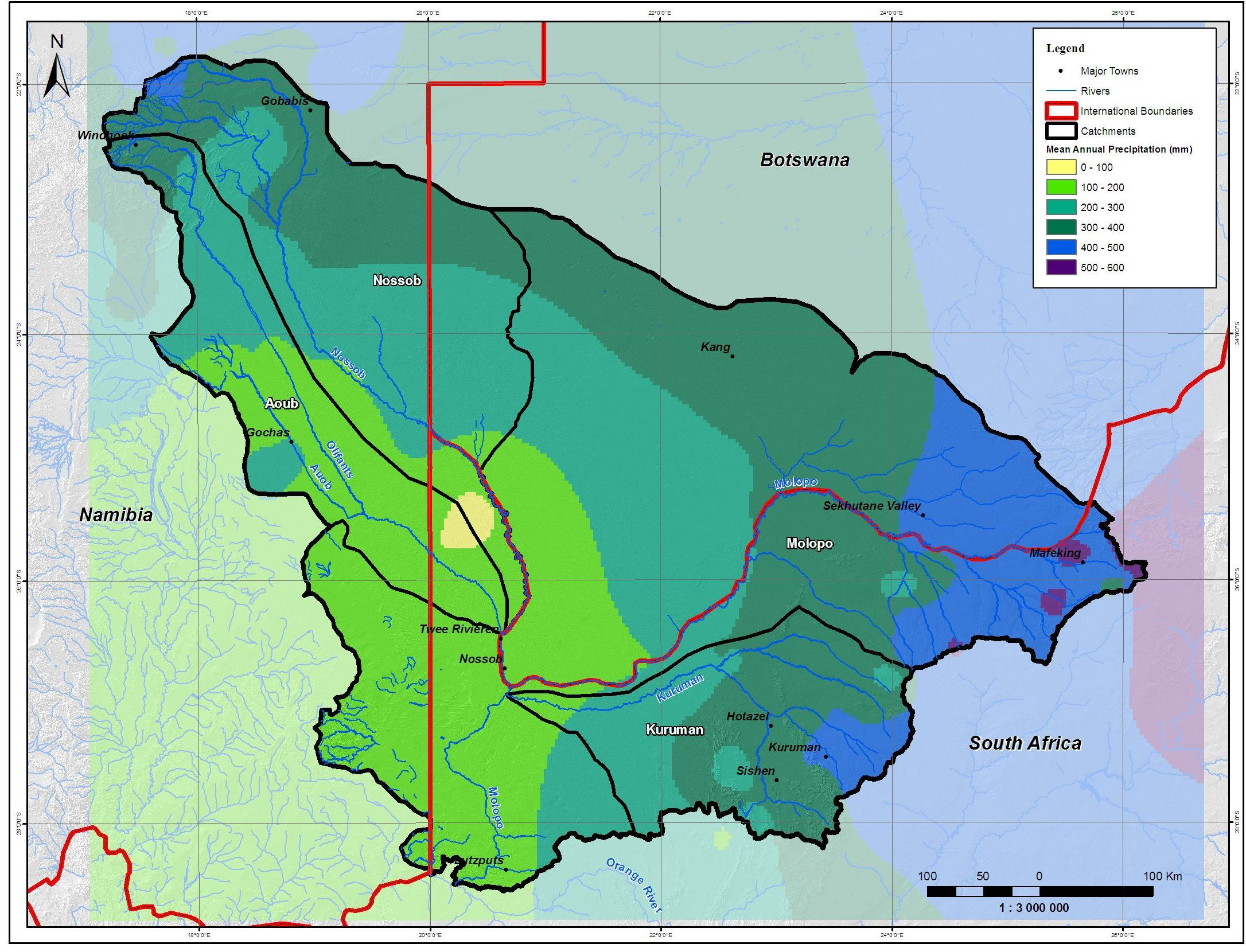 Nossob catchment, without any channel losses, equals 164 Mm3/a. However, once