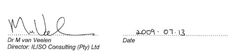 Approved for and on behalf of ILISO Consulting (Pty) Ltd, Ninham Shand