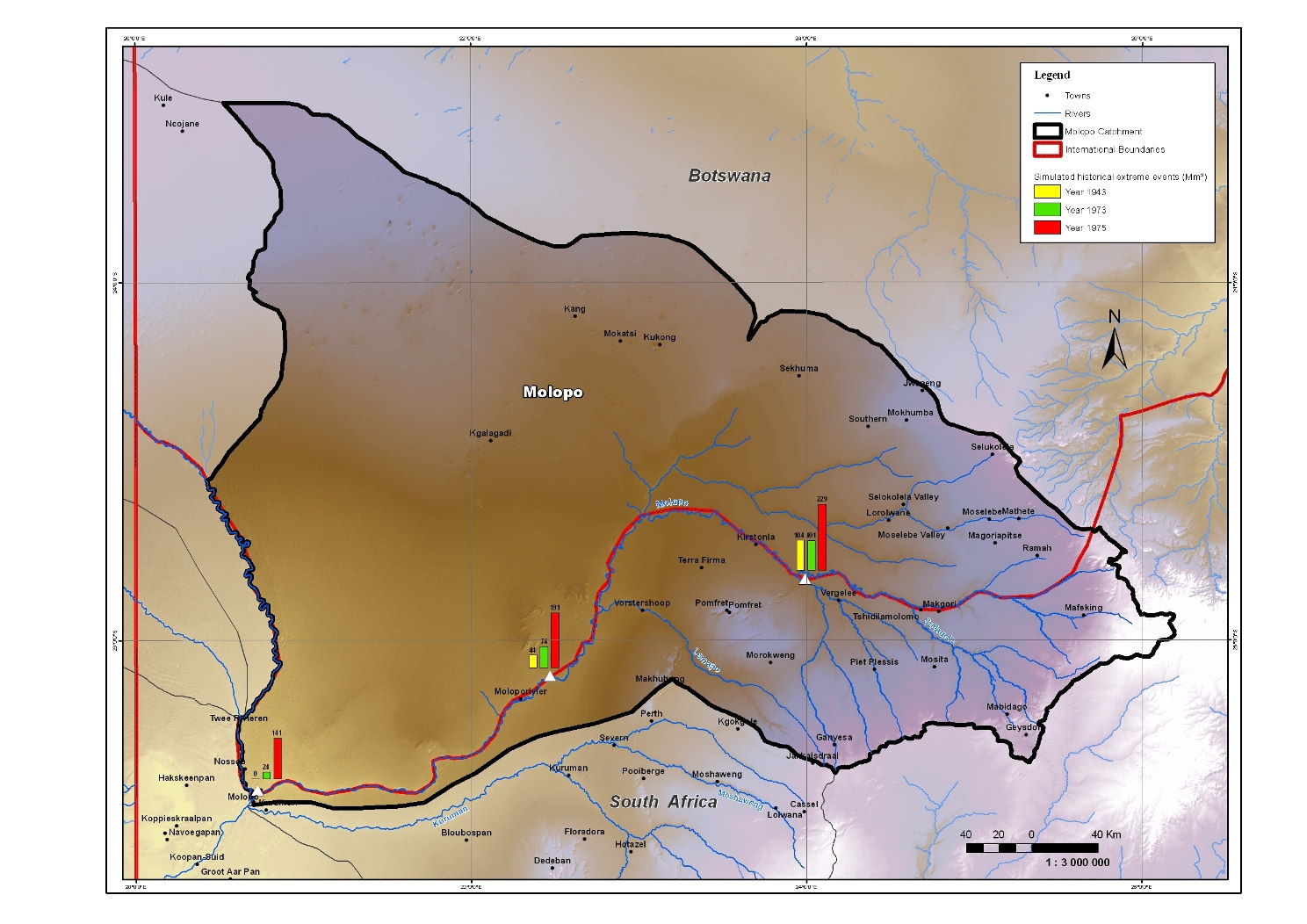 available as well as on historical records of floods in the Molopo-Nossob catchment.