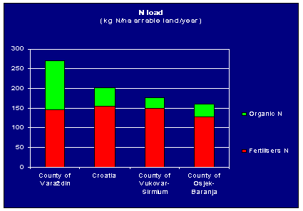5. In addition to unsustainable manure management, intensive fertilizer application has been identified as a significant source of nutrient pollution in Croatian soil and waters. In 2001, Croatian consumption of nutrients from fertilisers on arable land was 58 percent higher that of the EU-15 countries. One cause exacerbating the situation is the limited knowledge and experience of the Croatian farming community with nutrient pollution control measures. Farmers are generally unaware of the damage that can be caused by inappropriate nutrient management practices. Unsustainable agricultural practices: inadequate crop rotation, over use of agricultural inputs, absence of anti-erosion measures, etc. are resulting in poor yields and increasingly poor soil and water conditions characterized by rising levels of nutrients. Such pollution, both point-source from manure, and non-point from unsustainable agricultural practices, are of particular concern, especially in light of the high groundwater table that characterizes the Pannonian plain so that during winter and early spring, groundwater often merges with the surface waters and contaminates the country’s drinking water supplies.
