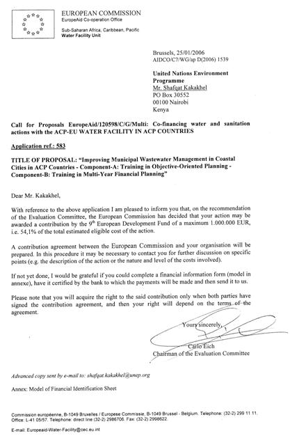 Annex 1. Letter of co-financing from the EU Water Facility
