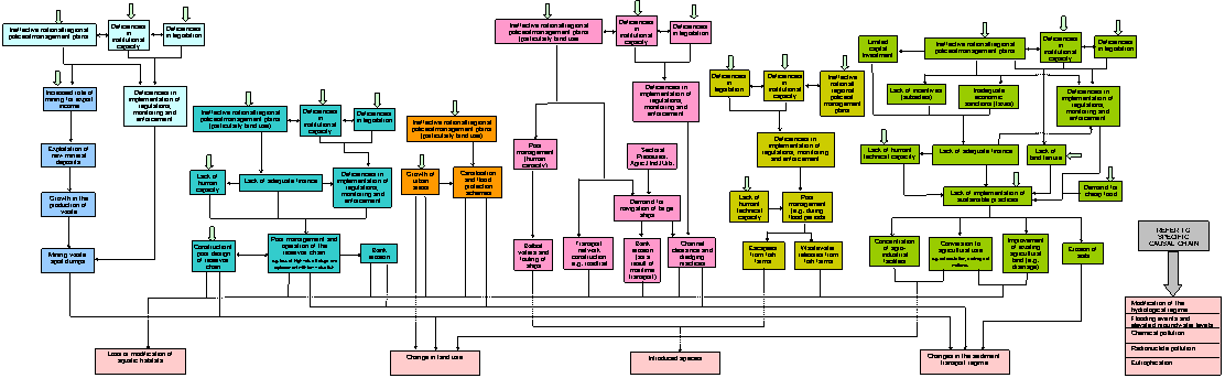 bed siltation, degradation of river floodplains, forest cutting, land